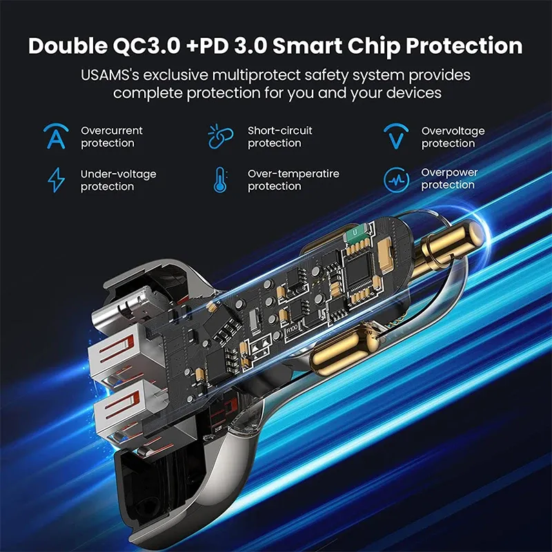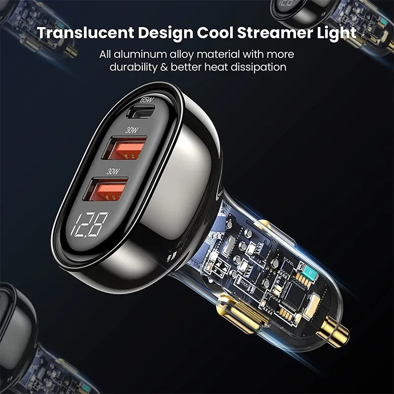 این شارژر دارای دو درگاه خروجی USB و Type-C است . این 2 درگاه از فناوری فست شارژ QC3.0 و PD پشتیبانی می کنند . توان خروجی کلی این شارژر 95 وات می باشد . به این معناست که می تواند دو دستگاه را به طور همزمان با سرعتی بالا شارژ کند . ولتاژ ورودی این شارژر 12 الی 24 ولت است که می توان از آن در اکثر خودروها استفاده کرد . بدنه این شارژر از آلیاژ روی ساخته شده است که بسیار مقاوم و بادوام می باشد .