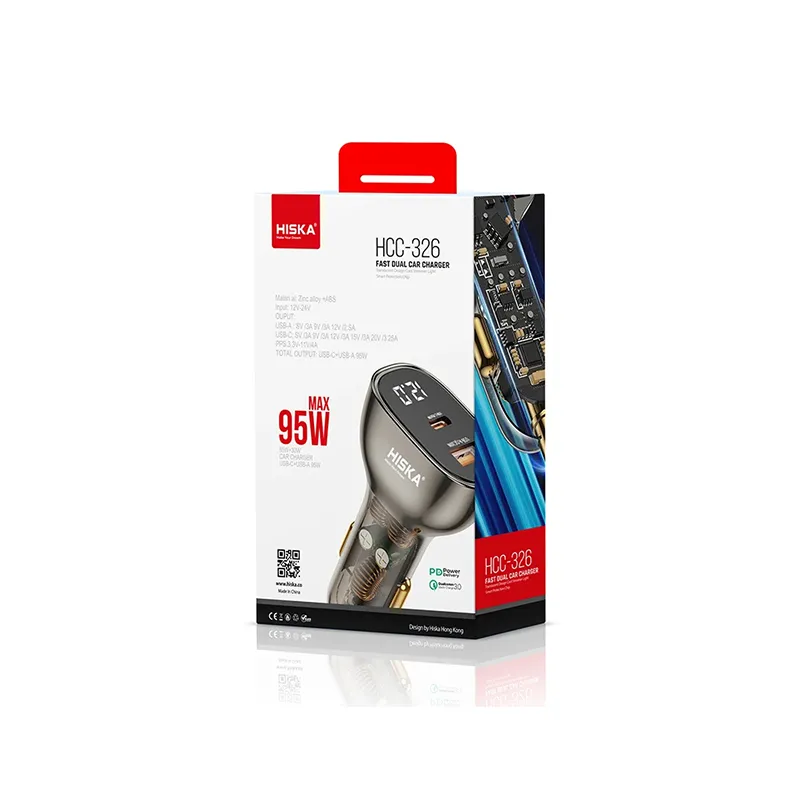 شارژر فندکی خودرو هیسکا مدل HCC-326 یک شارژر دو پورت با قابلیت فست شارژ است که برای شارژ سریع گوشی‌های هوشمند ، تبلت‌ها ، و سایر دستگاه‌های الکترونیکی طراحی شده است . در ادامه به ویژگی های این محصول می پردازیم .