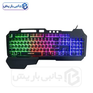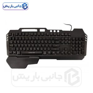 صفحه کلید گیمینگ با نور زمینه رنگین کمانی ظاهر چشمگیری به خود اختصاص داده است. این صفحه کلید، 104 کلید با طراحی استاندارد دارد که تعداد ضربه پذیری کلید ها 5 میلیون بار می باشد، که یک کلید مختص برای روشن و خاموش کردن نور زمینه RGB است البته در دو حالت نور زمینه قابل تنظیم است، این کیبورد دارای 14 کلید کلید مالتی مدیا برای سرعت بخشیدن به انجام کارها را دارد، طراحی کلید ها قابلیت ضدآب دارد و دارای جنس باکیفیت است که هنگام تایپ کردن احساس خستگی انگشتانتان را نمی کنید و یکی از بهترین ویژگی این کیبرد حکاکی حروف فارسی به لیزر را دارد ک در صورت استفاده مداوم حروف کم رنگ نمی شوند و نیازی به برچسب حروف فارسی نیست.