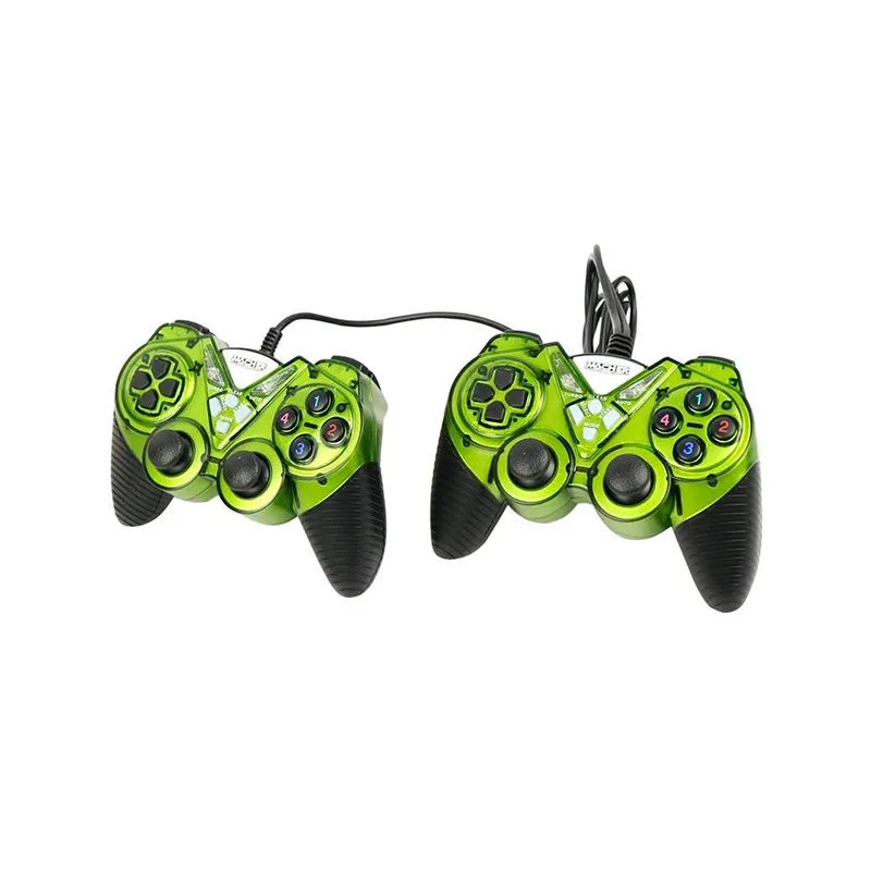 این پک دارای دو عدد دسته بازی است که سیم رابط به طول 1.5 متر دارند و از طریق پورت USB قابلیت اتصال به سیستم را دارند که بدون نیاز به درایور و نرم افزار خاصی به سیستم عامل وصل شده و آماده به کار خواهند شد؛ استفاده از گیم پد یا دسته بازی هیجان یک بازی عالی را به شما می دهد. این دسته ها با ساختار پیشرفته برای سهولت کنترل در هنگام بازی به بازار عرضه شده اند. در این دسته بازی از قابلیت شوک دوگانه استفاده شده است که برای گیمر های حرفه ای خوشایند است، در کلید های این دسته از سیلیکون استفاده شده است که با توجه به کیفیت سیلیکون به کار رفته عمر کلید ها طولانی می شود.