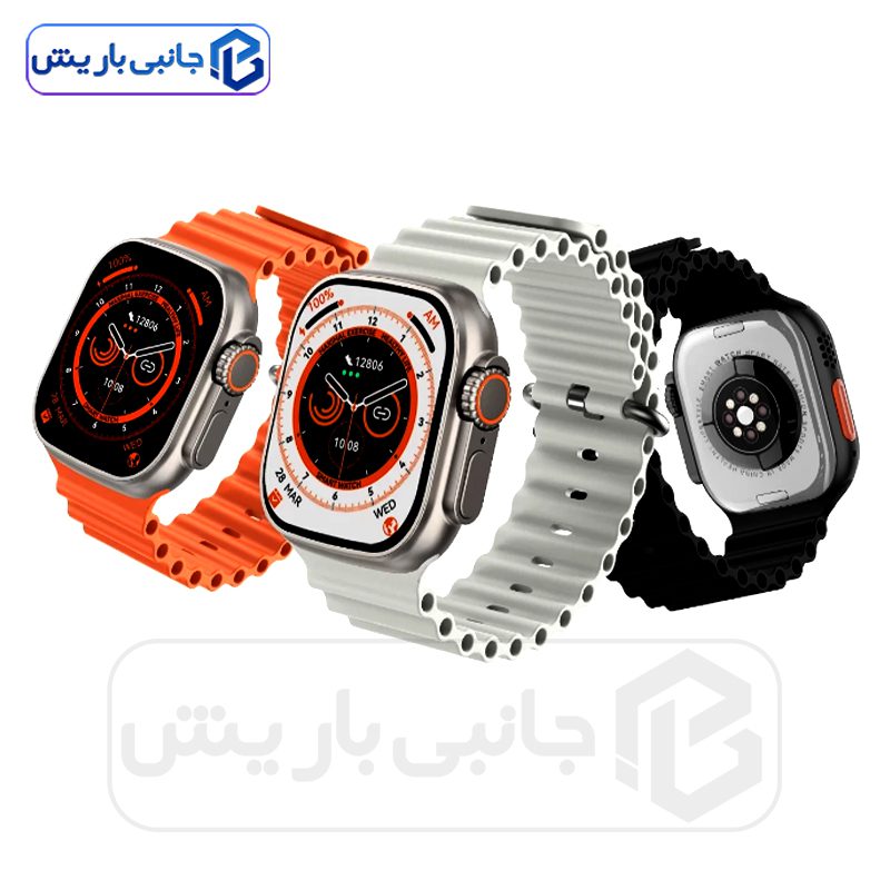 | قابلیت ها | پشتیبانی از زبان فارسی در منو و اعلان ها / نمایش مخاطبین(20 مخاطب بصورت دلخواه) / فرمان صوتی(از ساعت به گوشی) / قابلیت گذاشتن تصویر زمینه دلخواه / دارای GPS / دارای 1 الی 2 بازی جهت سرگرمی / کنترل موزیک و دوربین / آنالیز ورزش های شما / قابلیت تعویض بند با بند های اپل واچی / قابلیت مکالمه / قابلیت پیدا کردن گوشی از طریق ساعت و بالعکس / حالت همیشه روشن / سبک های مختلف منو و حالت های ورزشی |
